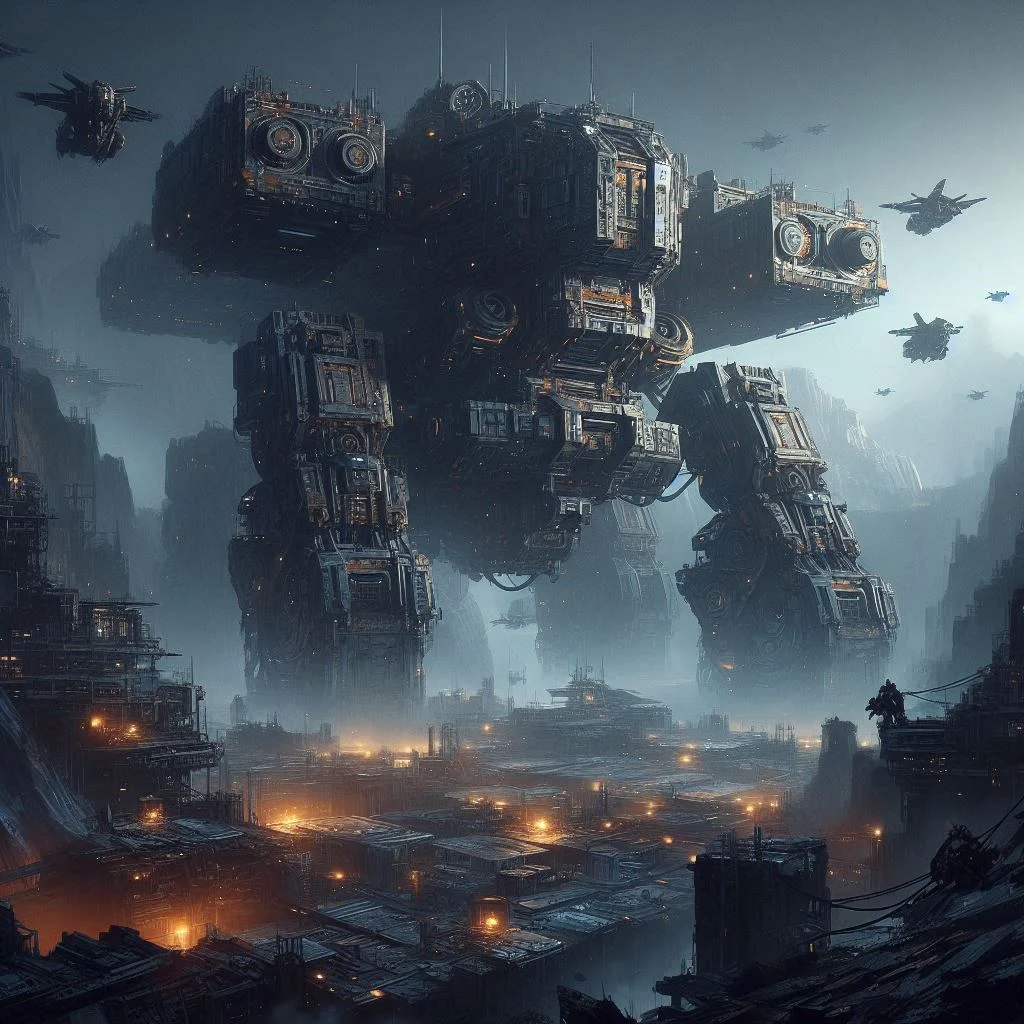 매우 훌륭한 컨셉 아트, 극도로 세밀함, 무거운 기계, 단단한 표면, 호켄, 공상 과학, 전장, 어둡고 우울한 공상과학 분위기, (FRS:1.5) ,(lora:srdxl_v07ux:0.8)