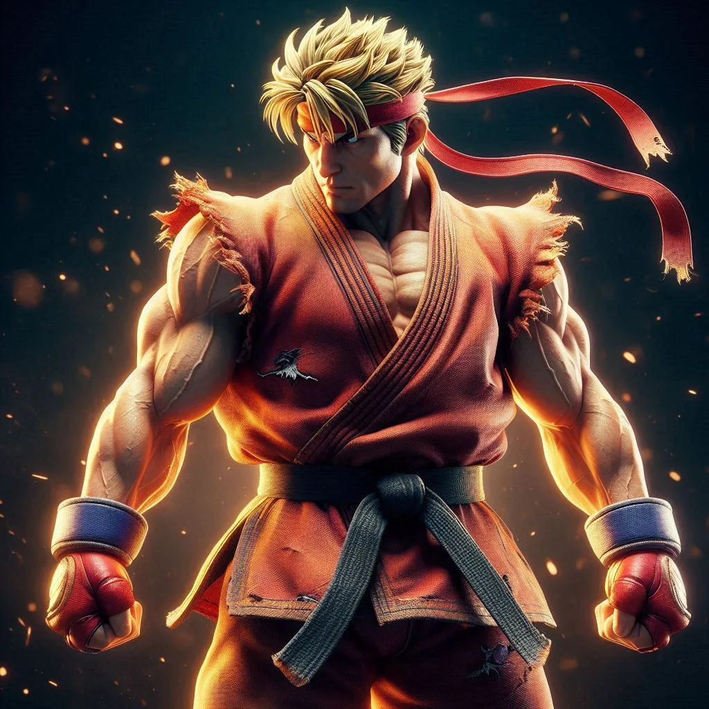스트리트 파이터 켄, 필수 디테일, 전신, 명작, 초실감, hd, 8k Street Fighter Ken, essential details, full body, masterpiece, super realistic, hd, 8k